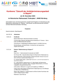 241.2024-10_programm-konferenz-antidiskriminierungsarbeit.pdfKonferenz "Zukunft der Antidiskriminierungsarbeit in Bayern" am 22. November 2024 im Historischen Rathaussaal, Fünferplatz 1, 90403 Nürnberg Veranstalter*innen sind die bayerischen…
