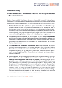 258.2023-12-04_pm-bmb-jahresrueckblick-2023.pdfPressemitteilung Rechtsextremismus rückt näher – Mobile Beratung stellt ersten Jahresrückblick vor Berlin, 4. Dezember 2023 / Wie hat sich die extreme Rechte 2023 entwickelt? Und was haben…