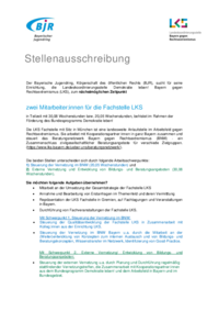 283.2023-07-27_Stellenausschreibung_LKS-Fachstelle.pdfStellenausschreibung Der Bayerische Jugendring, Körperschaft des öffentlichen Rechts (BJR), sucht für seine Einrichtung, die Landeskoordinierungsstelle Demokratie leben! Bayern gegen…