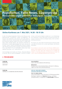 349.Einladung_Politische_Bildung_an_Schulen.pdfPopulismus, Fake News, Lügenpresse Herausforderungen politischer Bildung an Schulen Online-Konferenz am 7. Mai 2021, 14.30 – 18.15 Uhr In allen 16 Landesschulgesetzen findet sich der Bezug zu den…