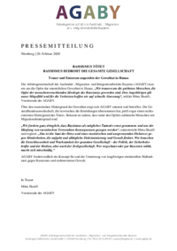 412.PM_Gewalttat_Hanau_20.02.2020.pdfPRESSEMITTEILUNG Nürnberg | 20. Februar 2020 RASSISMUS TÖTET RASSISMUS BEDROHT DIE GESAMTE GESELLSCHAFT Trauer und Entsetzen angesichts der Gewalttat in Hanau Die Arbeitsgemeinschaft der Ausländer-,…