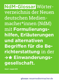 438.2019-07_Glossar_Webversion.pdfNdM-Glossar Wörterverzeichnis der Neuen deutschen Medienmacher*innen (NdM) mit Formulierungshilfen, Erläuterungen und alternativen Begriffen für die Berichterstattung in der →…