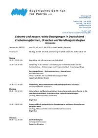 501.8B0701_Programm_Rechtspopulismus.pdfOberanger 38 80331 München Telefon: 089 / 260 90 06 Fax: 089 / 260 90 07 bsp@baysem.de www.baysem.de Testiert nach Lernorientiertes Qualitätsmodell (LQW) Extreme und neuere rechte Bewegungen in…